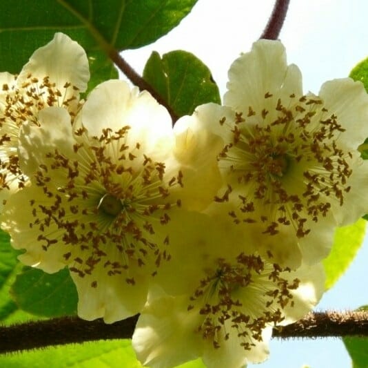 Актинидия деликатесная — невысокая, лиана либо вьющийся кустарник. Плоды этого растения, киви, хорошо известны каждому современному человеку. Они значительно крупнее, чем у других видов, до 6–7 см. в диаметре, округлые или вытянутые, зеленые или коричневые. Мякоть зеленоватая, беловатая или бурая, со множеством темно-фиолетовых или черных семян.